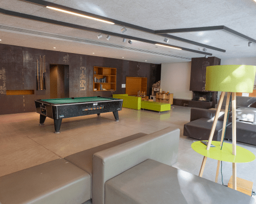 Guests at the new youth hostel meet in the spaciously appointed and designed lounge in the entrance lobby. Here they can sit comfortably around the open fire, play pool or check their e-mails using the free Wi-Fi. All 2-bed rooms have a shower/WC, as do many of the 4-bed rooms. The youth hostel contains a total of 220 beds.
